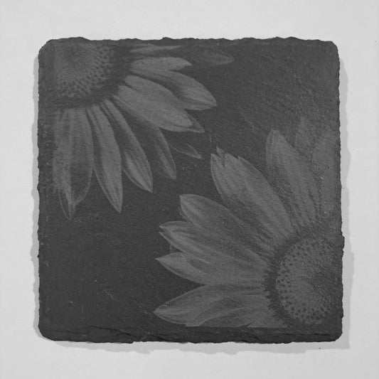 Laser engraved sunflower slate coasters